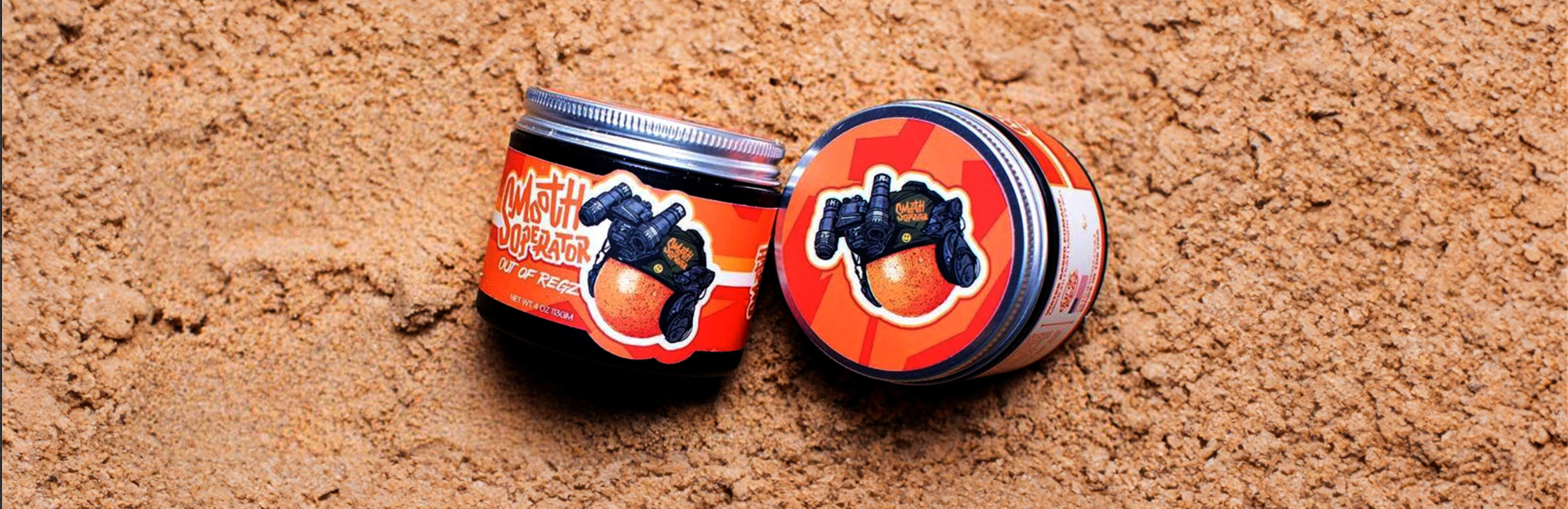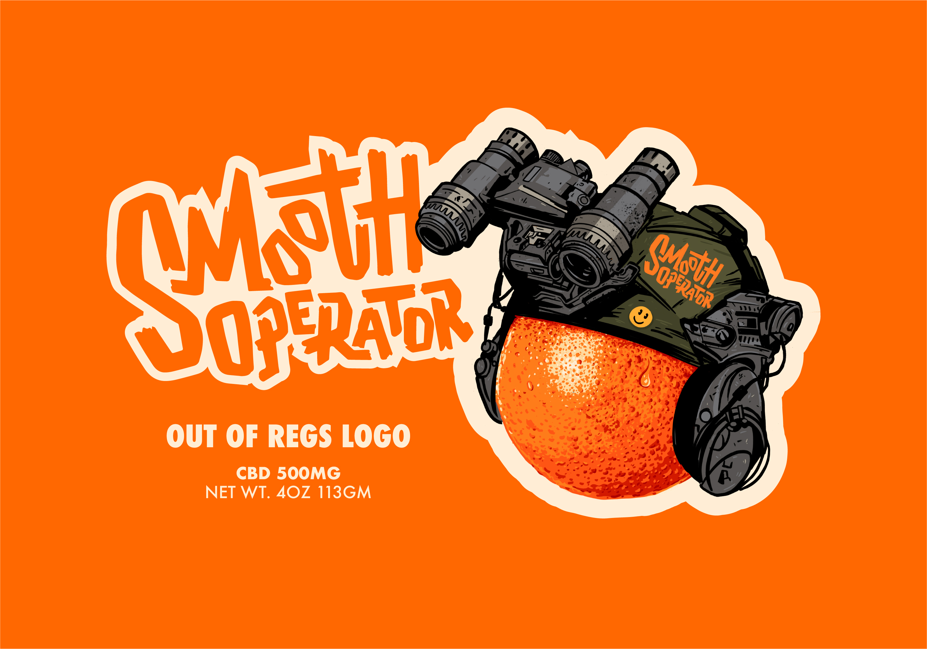 Out of Regs returned to us for the 2nd Launch of Smooth Operator in 2022. The prior year we had designed a product centered around a tropical, coconut, hula/military theme and Joe wanted the new designs to have the same military ode, while incorporating the new citrus fragrance. During our kickoff Derric had the crazy idea of adding a tactical helmet with nods to an orange, and Joe let us roll with it! We diverted from the line design that Derric has become known for and illustrated a realistic orange juxtaposed to the illustration style of the tactical helmet which took inspiration military film pop culture.