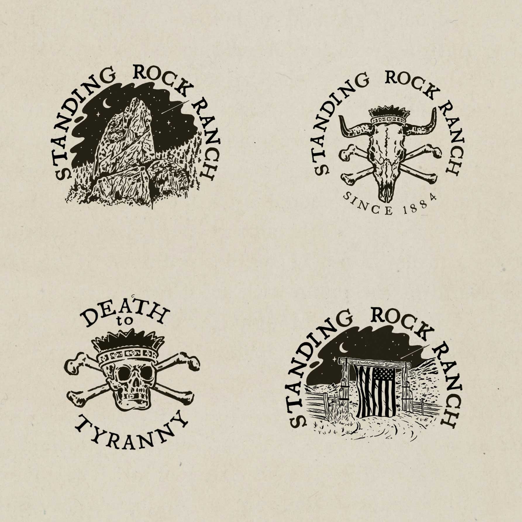Standing Rock Ranch approached me to develop a visual identity that captured the rugged authenticity of the American West while still feeling timeless and refined. The ranch has deep historical roots dating back to the late 1800s, and the goal of the project was to create a brand system that honored that heritage while giving the ranch a cohesive and recognizable identity across merchandise, signage, and print materials.The design direction draws heavily from traditional ranch iconography, vintage livestock brands, and hand-crafted western illustration styles. Rather than creating a single mark, I developed a small system of marks that could be used across different contexts while maintaining a consistent visual voice. Each mark was designed to feel as though it could have existed historically while still functioning in modern applications.